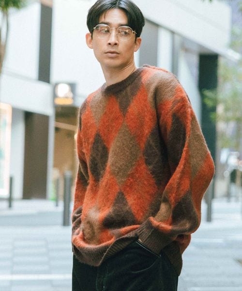 アーガイルシャギーニットプルオーバー
