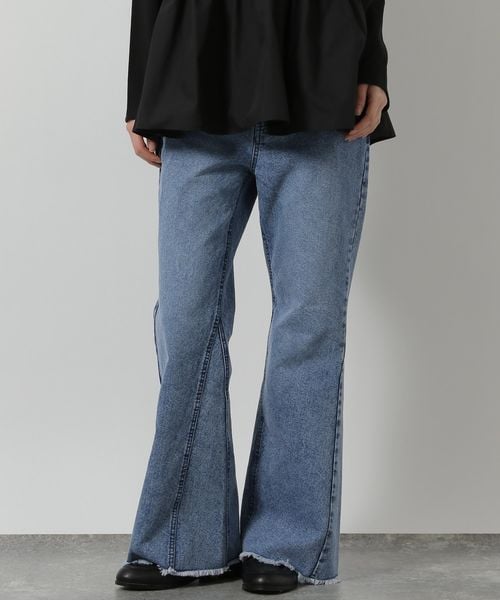 フリンジフレアデニムパンツ