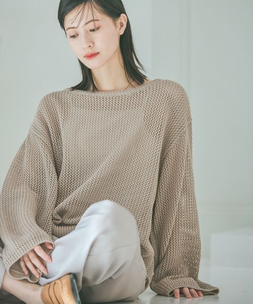 【WEB先行予約】5ゲージ透かし編みボートネックプルオーバー