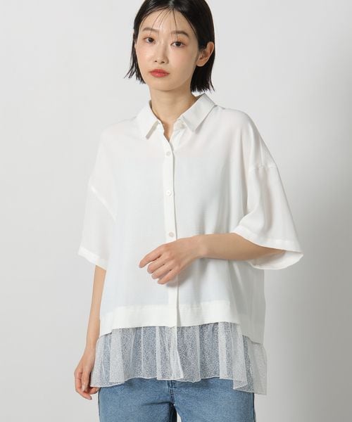 <多機能ウェア>ヘムレースドッキングシャツ