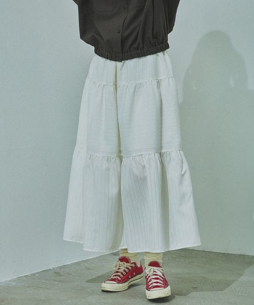 ストライプ切替フレアスカート