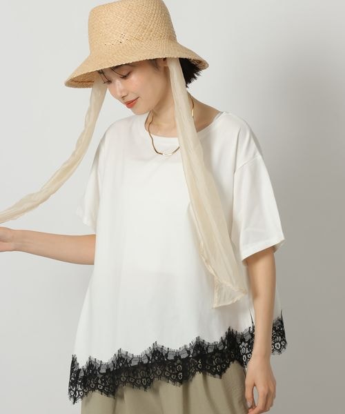 裾レースドッキングT