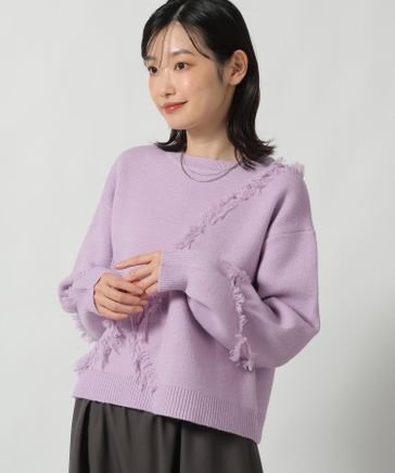 6ゲージフリンジジャガードニットプルオーバー