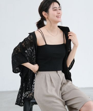 【多機能ウェア】リネンライクティアードキャミ