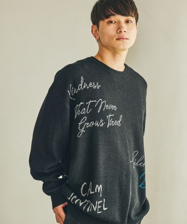 配色バック刺繍ニットプルオーバー