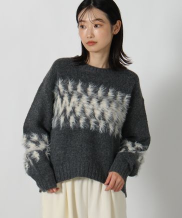 シャギーラインジャガードニットプルオーバー