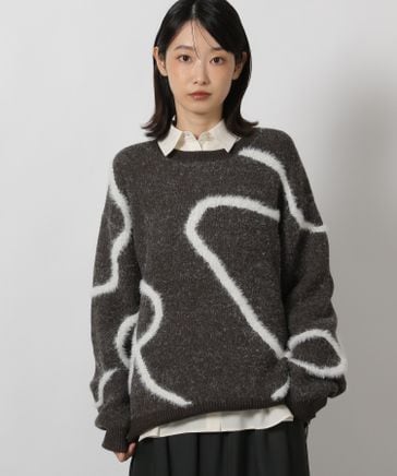 ソフトシャギーロゴジャガードニット