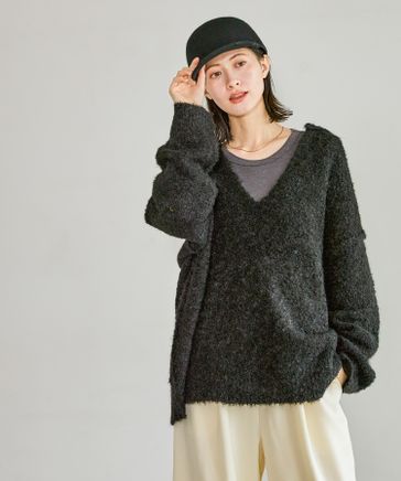 ブークレVネックニットプルオーバー