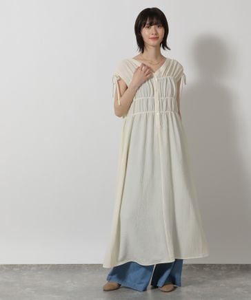 【接触冷感】ウェストタックカットノースリーブワンピース