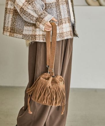 ヘリンボン巾着ショルダーバッグ/アウトレット価格