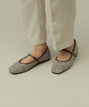 スクエアギャザーフラットパンプス