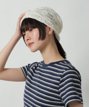 切替透かし編みハット