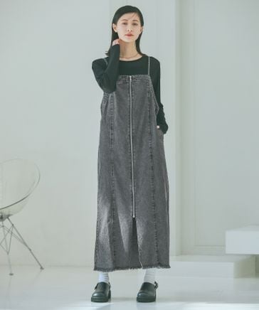 裾フリンジデニムジャンスカ