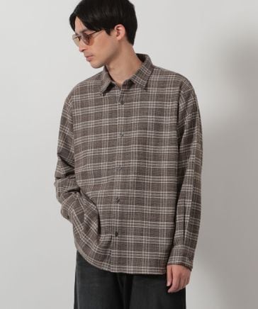 メランジチェック長袖シャツ