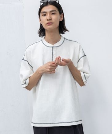 ワッフルステッチヘンリーネックTシャツ