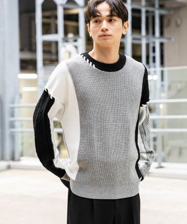 【WEB先行予約】パッチワークステッチニットプルオーバー