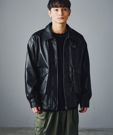 PUレザージップブルゾン