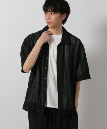 【セットアップ可】メッシュストライプオープンシャツ
