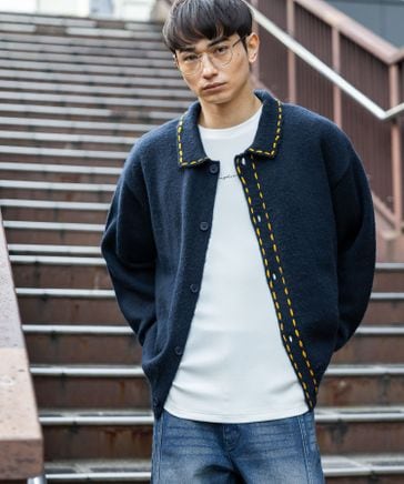 ハンドステッチニットカーデ