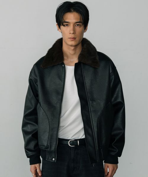 【LURAKU】Synthetic Leather Fur Collar Jacket