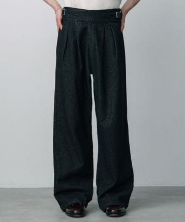 【LURAKU】Two Tuck Wide Straight Gurkha Denim