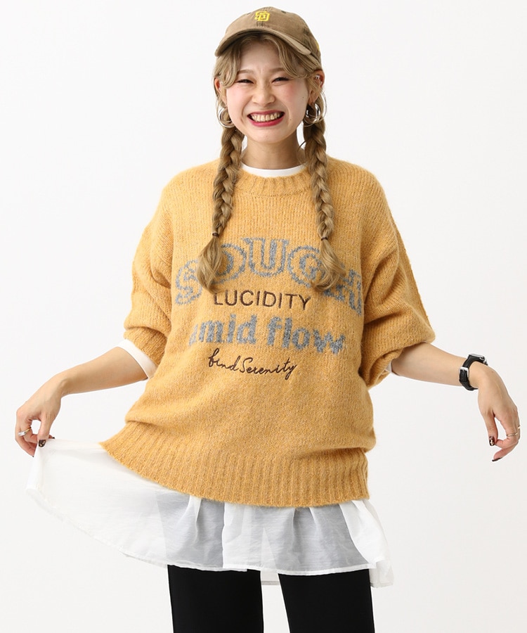 前面はシンプルながら、バックプリントが主役になるデザイン02 キャメルイエロー