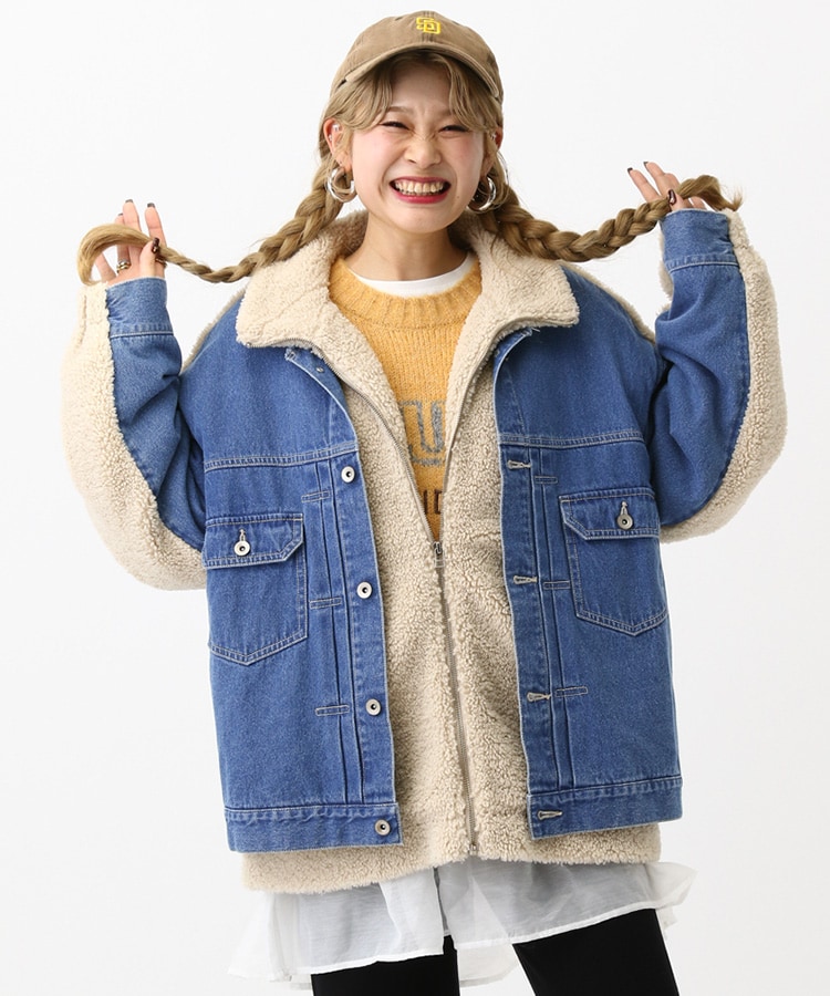 ボアとデニムの切り替えデザインで普段に馴染むカジュアルさ02