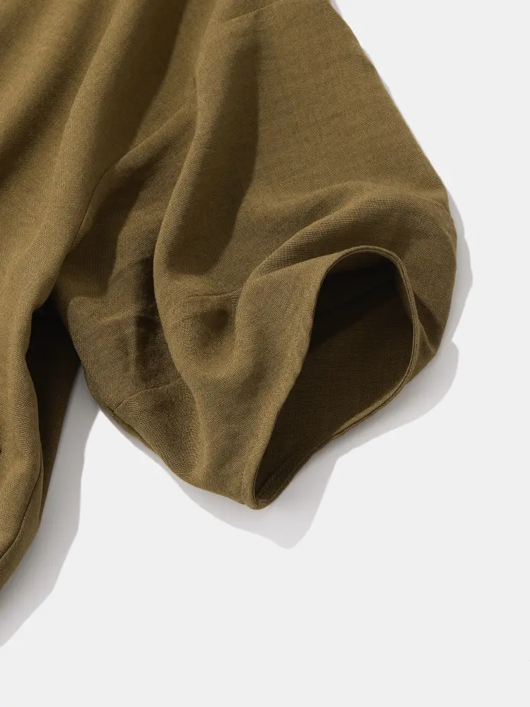 軽やかで清涼感のある素材を使用し、見た目も着心地も涼しく仕上げました。こだわりは、気になる二の腕しっかり隠してくれる安心の5分袖です。