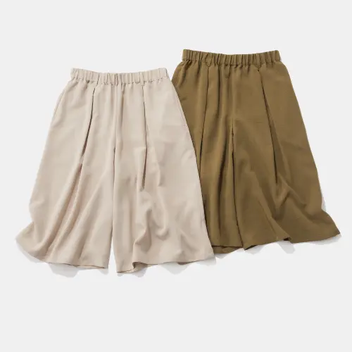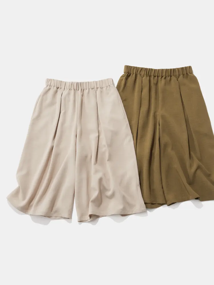 「ラクして、品よく」を叶える大人のタックハーフパンツ。「ハーフパンツは子供っぽくなりそう…」そんなイメージを覆す計算されたシルエット。膝周りを上品にカバーする大人な丈感。