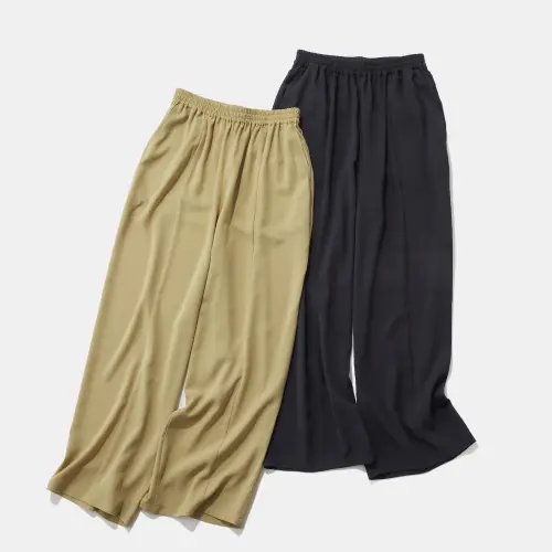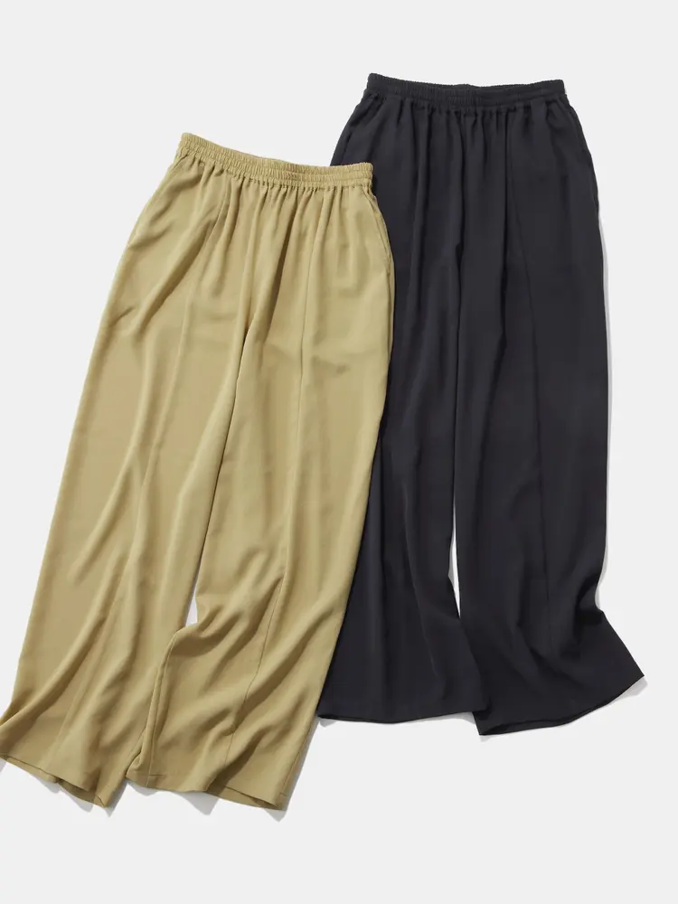 暑い日も、涼しく、美しく。3つの願いを叶える多機能ワイド。カジュアルになりすぎず、上品な印象を与える素材と体型カバーをしつつ、リラックスして履ける定番の形。