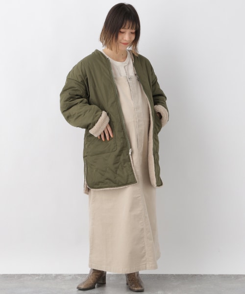 中綿ノーカラーコートがおすすめ!