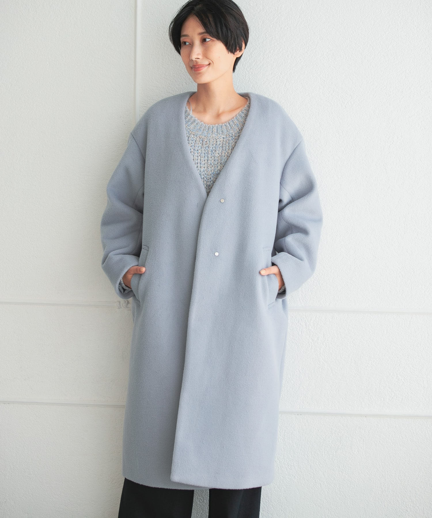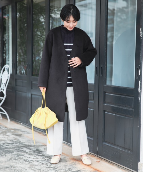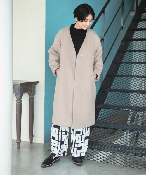 ノーカラーロングコートがおすすめ!