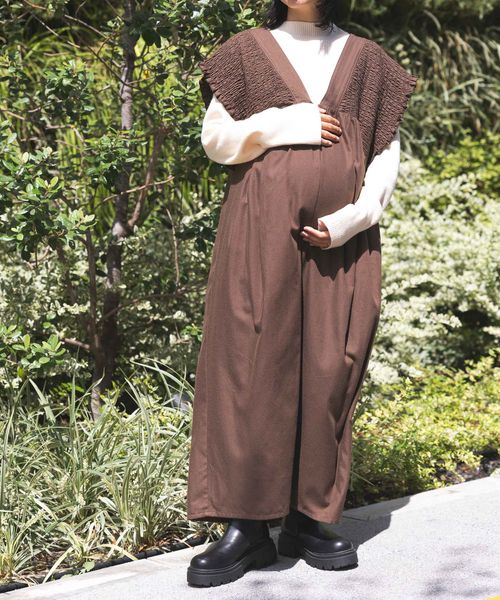 【産前・産後対応】マタニティ/シャーリングワンピースAW