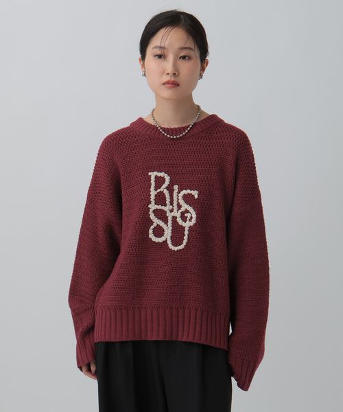 5ゲージ編み柄モールロゴプルオーバー
