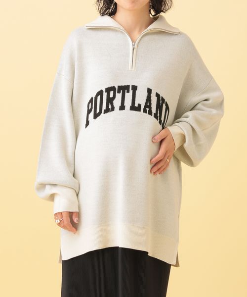 【産前・産後対応】マタニティ/ハーフZIPロゴニットチュニック