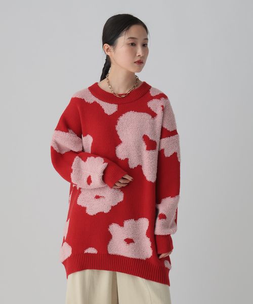 6ゲージループジャガード花柄チュニック