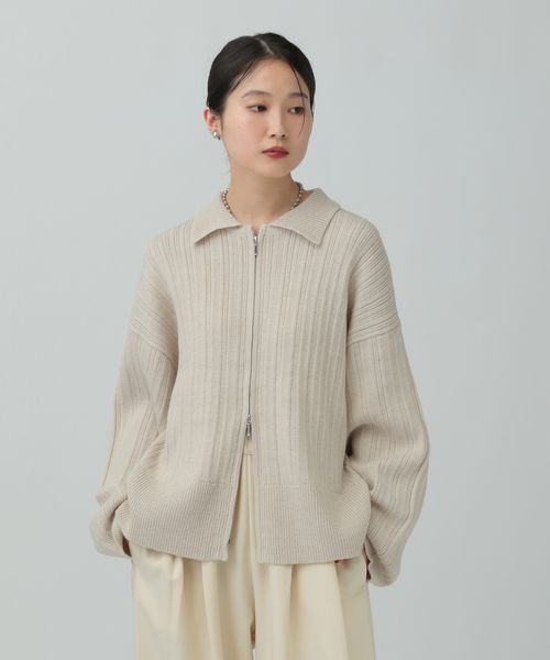 5ゲージ編み柄ZIP襟カーディガン【新色予約】