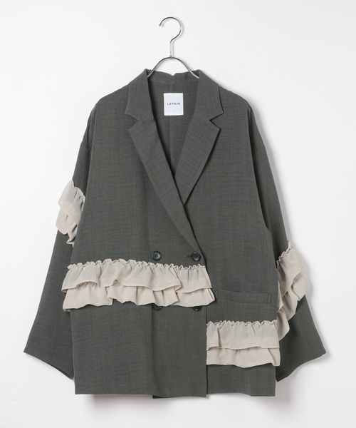 《リネンライクドライシリーズ》フリルW長袖ジャケット