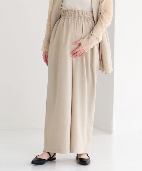 《リネンライクドライシリーズ》【産前・産後対応】マタニティ/ギャザーワイドパンツ【新色予約】
