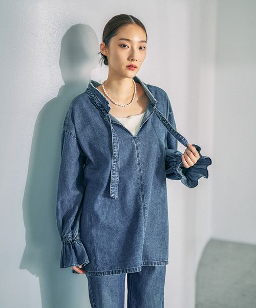 デニムフリルカラーブラウス2