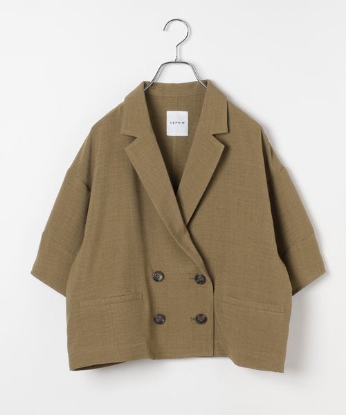 《リネンライクドライシリーズ》ランタンショート5分袖ダブルジャケット