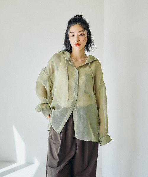 メッシュフード長袖シャツ