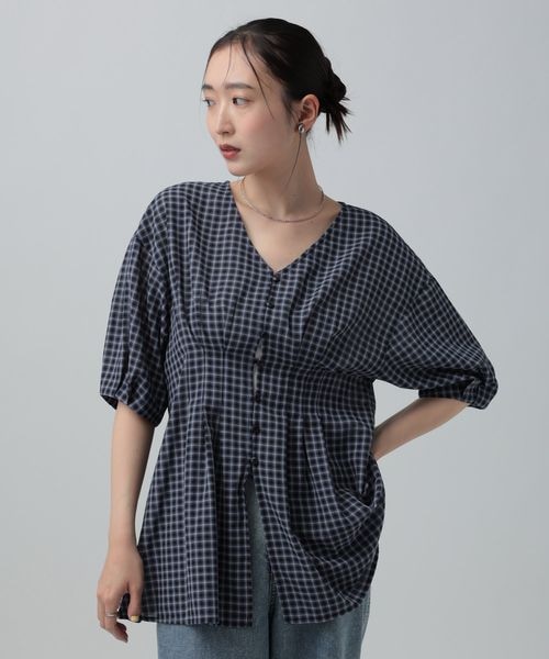 チェックタックブラウス/SS