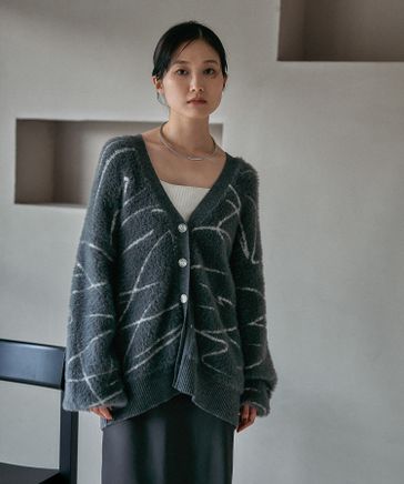 【WEB先行予約】5ゲージ柄シャギーVカーディガン