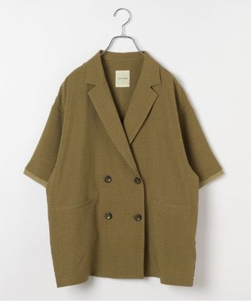 【新作WEB予約】《リネンライクドライシリーズ》ルーズ切り替え5分袖Wジャケット