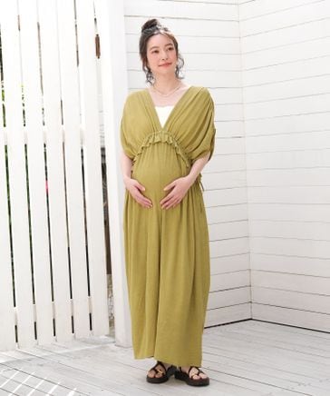 【新作WEB予約】【産前・産後対応】マタニティ/シャーリングVワンピース