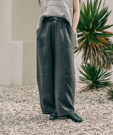 《リネンライクドライシリーズ》ギャザーワイドパンツ【新色予約】