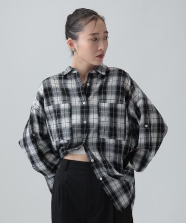 ワッシャーチェック長袖シャツ