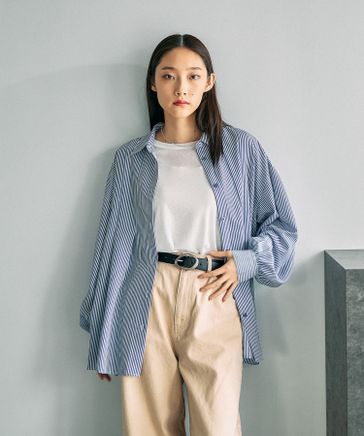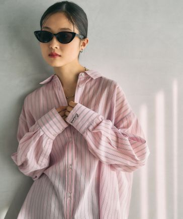 ストライプ刺繍シャツ
