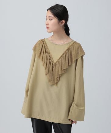 カットレースフリルブラウス